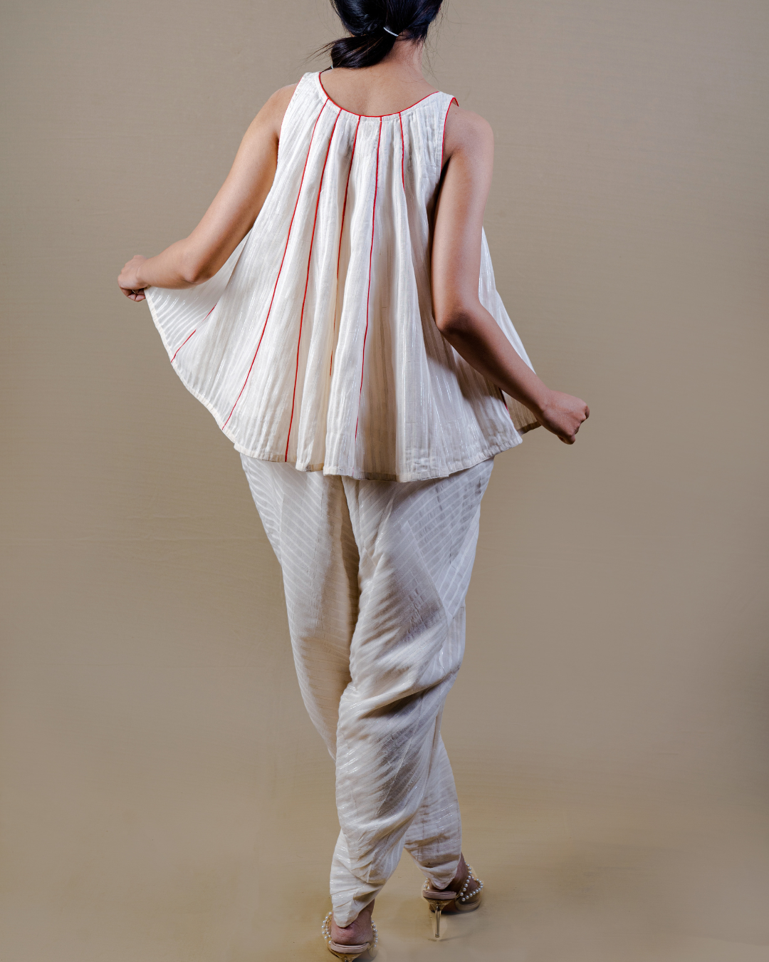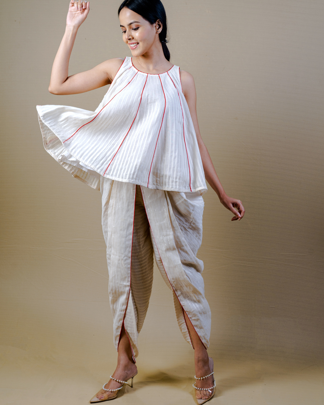 • A soft A-line kali top paired with a dhoti-inspired pant