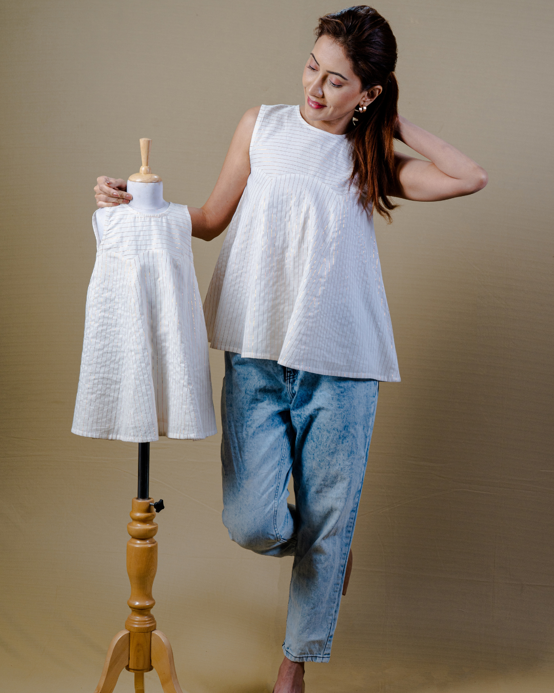Design Details : • Features a scallop-cut yoke for a detailed finish • Sleeveless for the chic look • Round pack neckline at the front, Pack Back neck keyhole with a loop button for a stylish closure • A flattering Kali top silhouette for added movement and flow • A Smart mix of horizontal and vertical lines creates a sleek silhouette . • Fully lined
