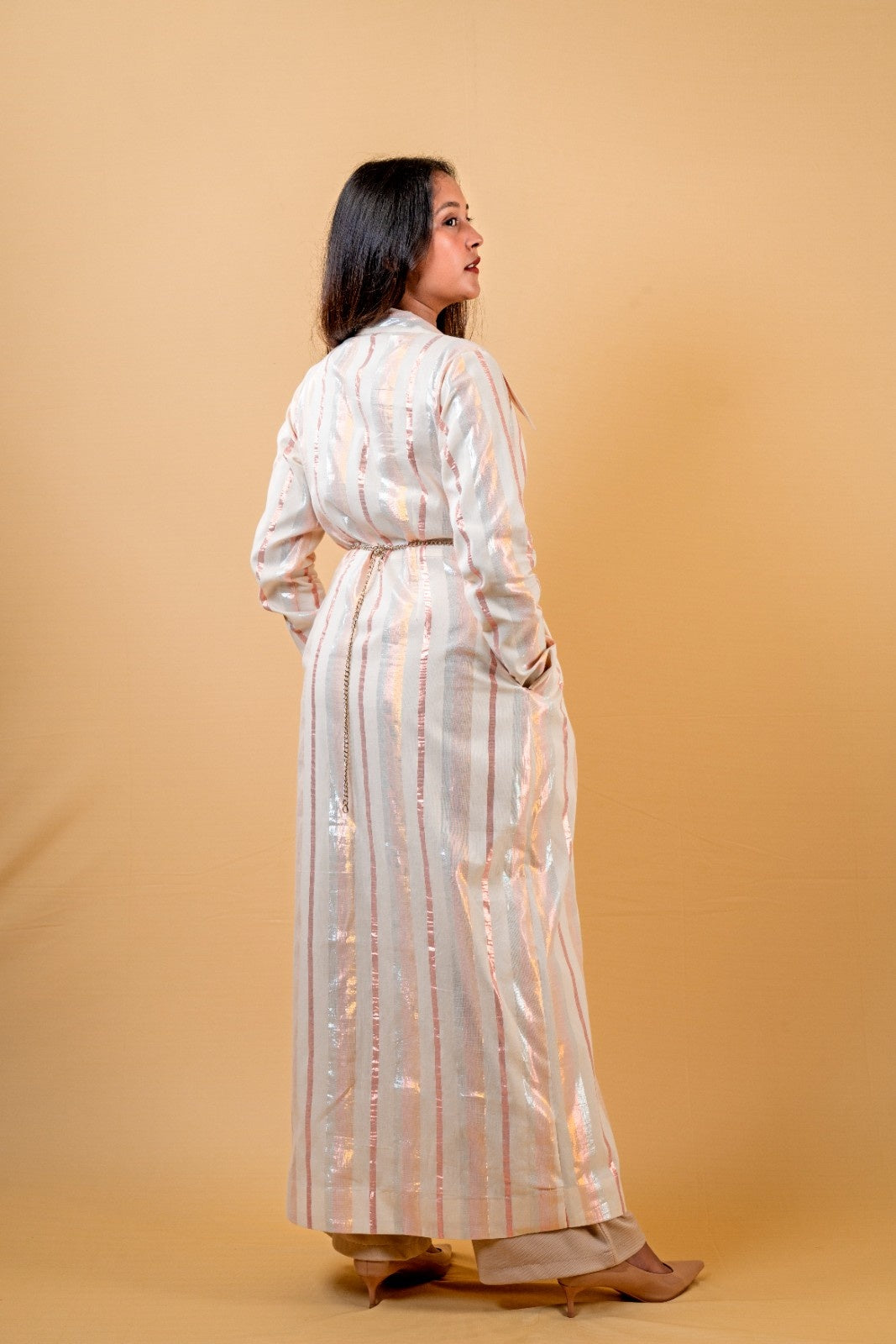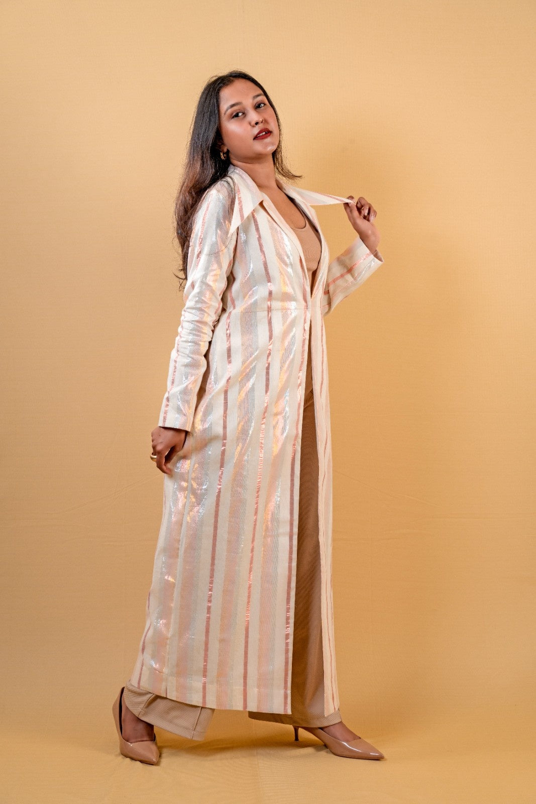 • A long, structured overcoat designed to layer with elegance and ease